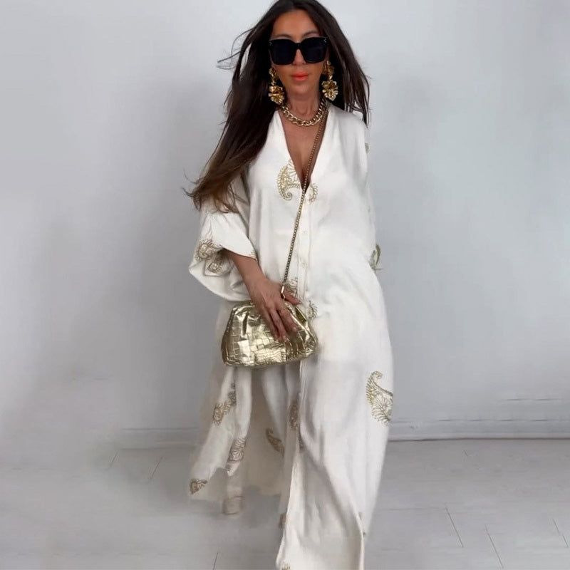 RELAXED KAFTAN SILHOUETTE: Float through your day in this breezy kaftan dress designed for maximum comfort. Its loose, forgiving fit flatters all body types, making it perfect for lounging, errands, or casual outings without sacrificing style.