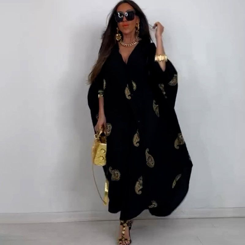Package Includes: 1*Casual Print & V-Neck Kaftan Dress for Women