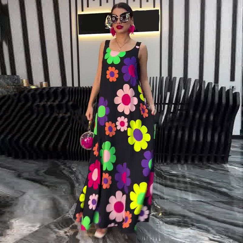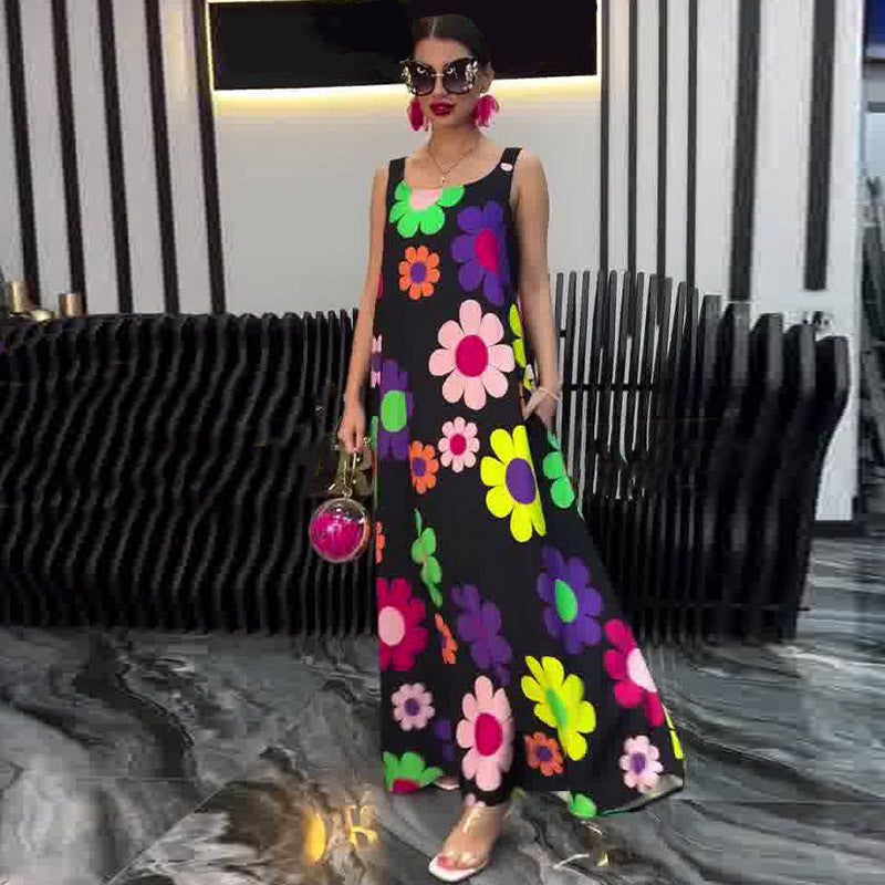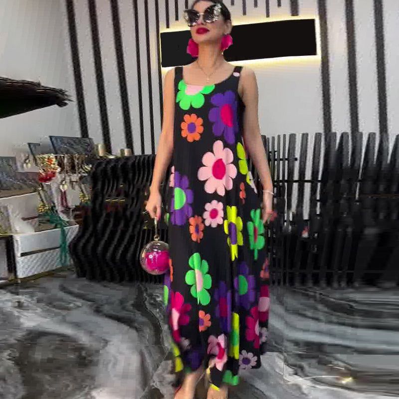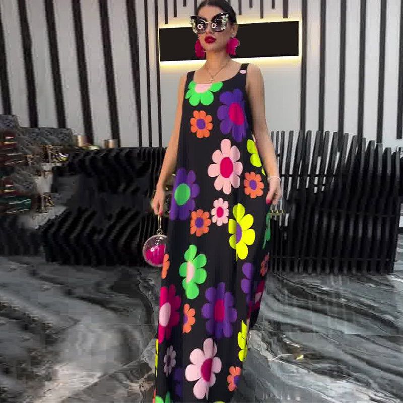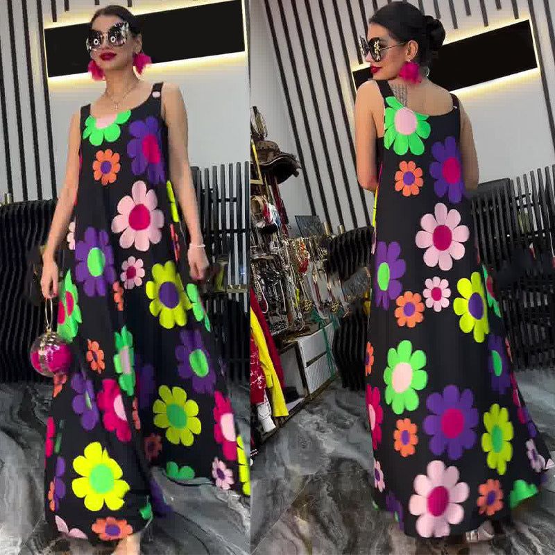 Package Includes: 1* Floral Printed Loose Sleeveless Dress