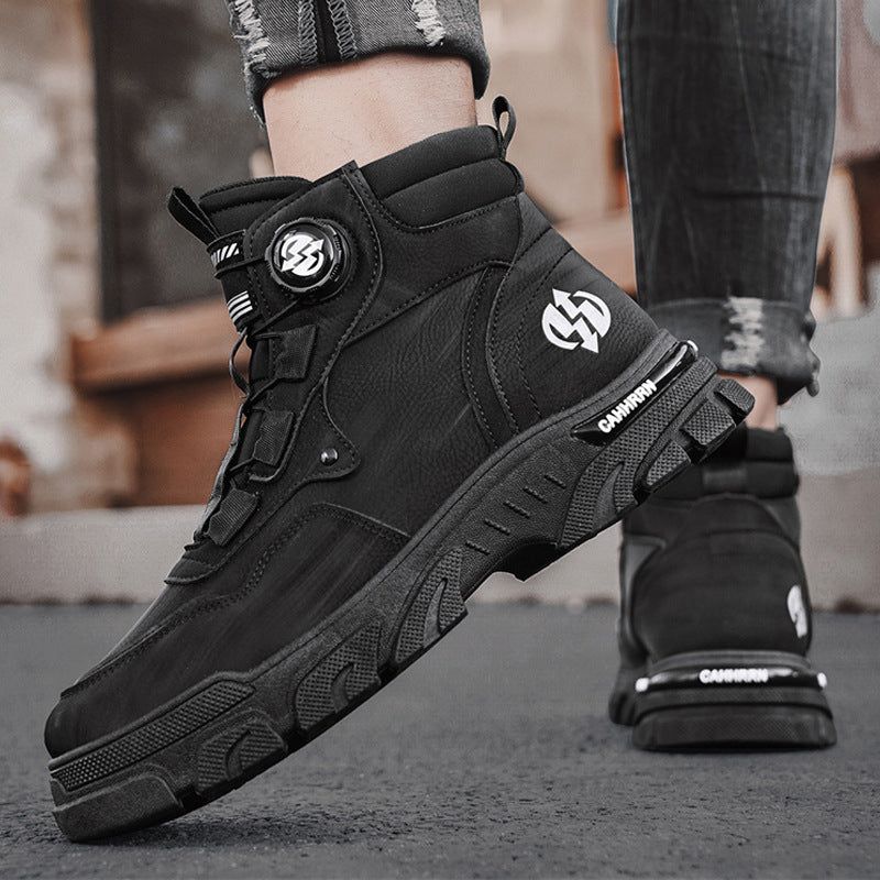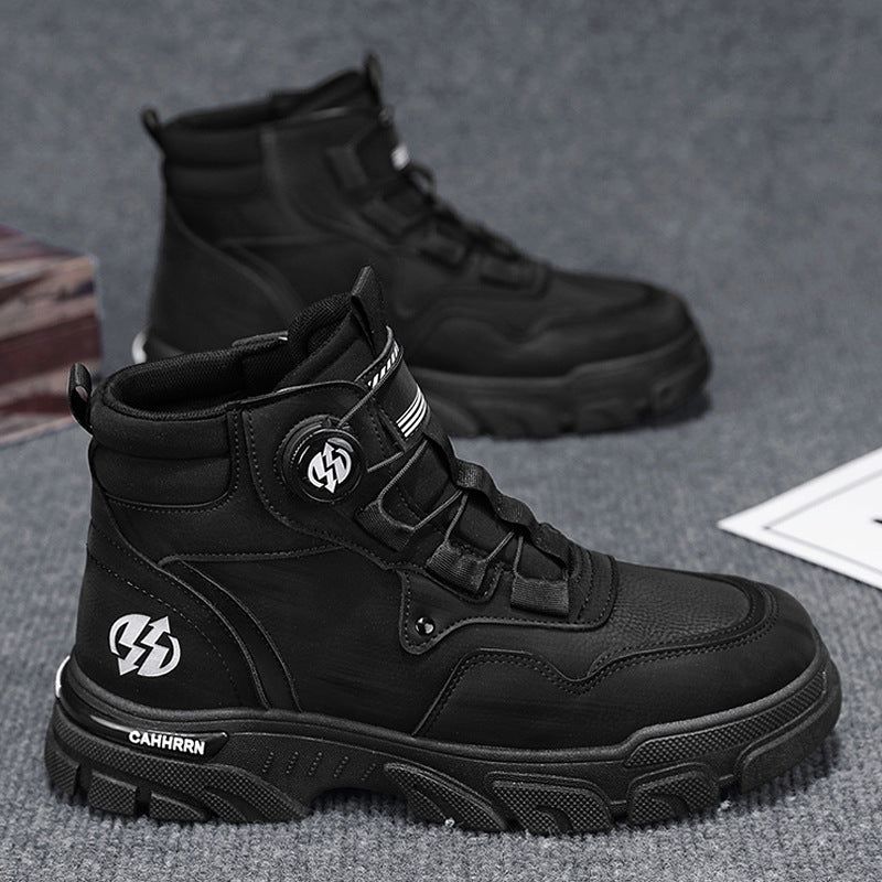 INSTANT ROTATING BUCKLE SYSTEM – Say goodbye to tying shoelaces. These work boots feature a smart rotating buckle that lets you slip them on or off in just one second. Simply twist to tighten and lift to release—ideal for fast-paced work environments where every second counts. This secure, adjustable fit enhances daily convenience and keeps your focus on the job, not your footwear.