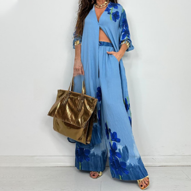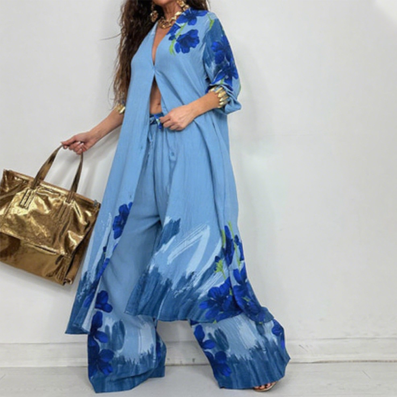 Package Includes: 1* Women's Longline Shirt Dress & Wide-Leg Pants Set